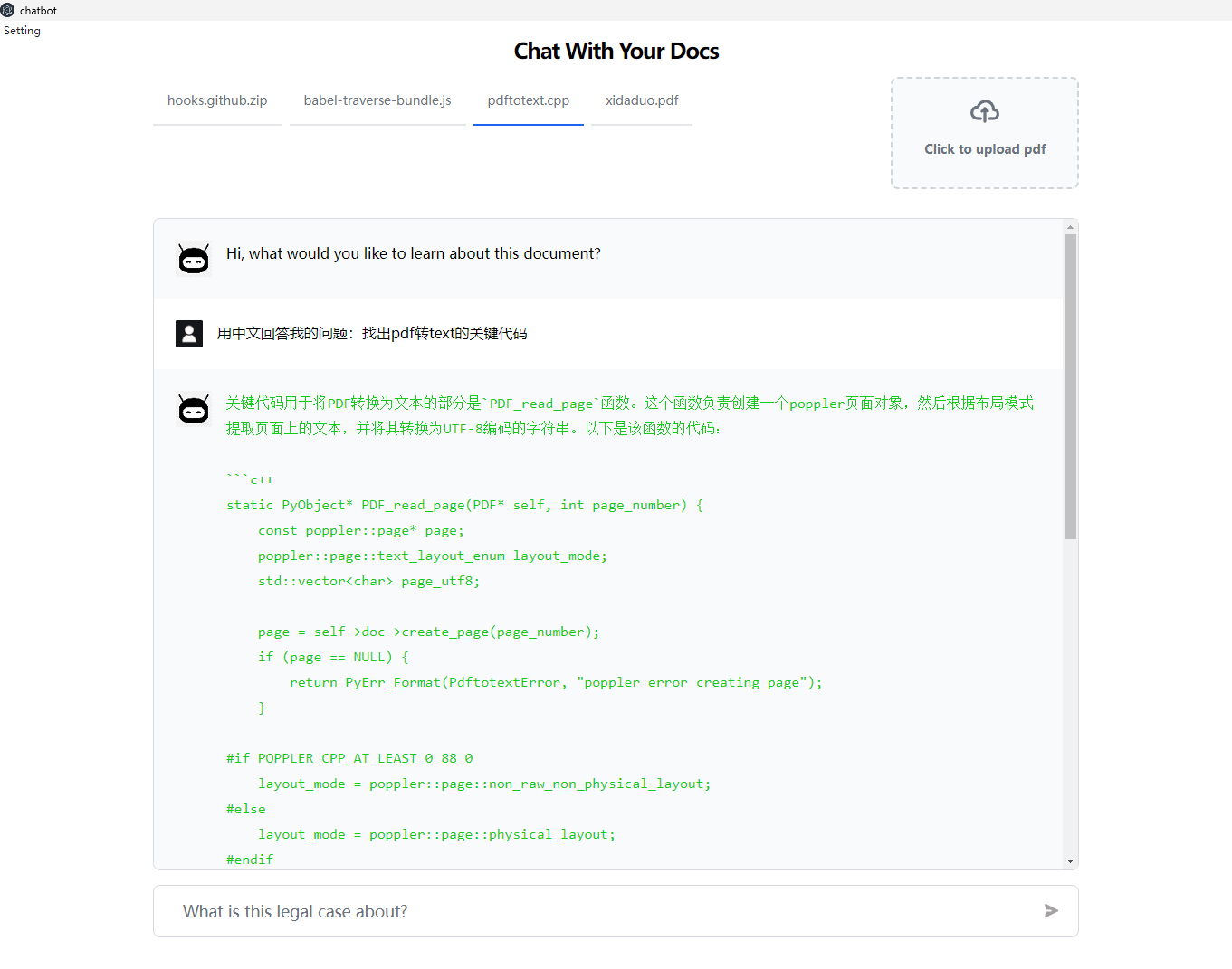 openai_api_key和proxy信息。 - 加载PDF文件(文件必须可编辑,文件名不支持中文),并开始您的阅读之旅。