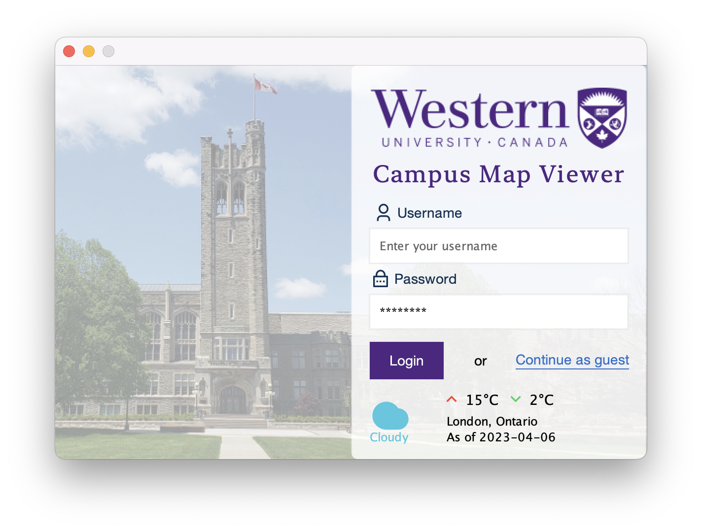 This software is a map viewer for western university. It allows you to add and find points of interest in Middlesex College, Western Science Center, and the Physics and Astronomy building.