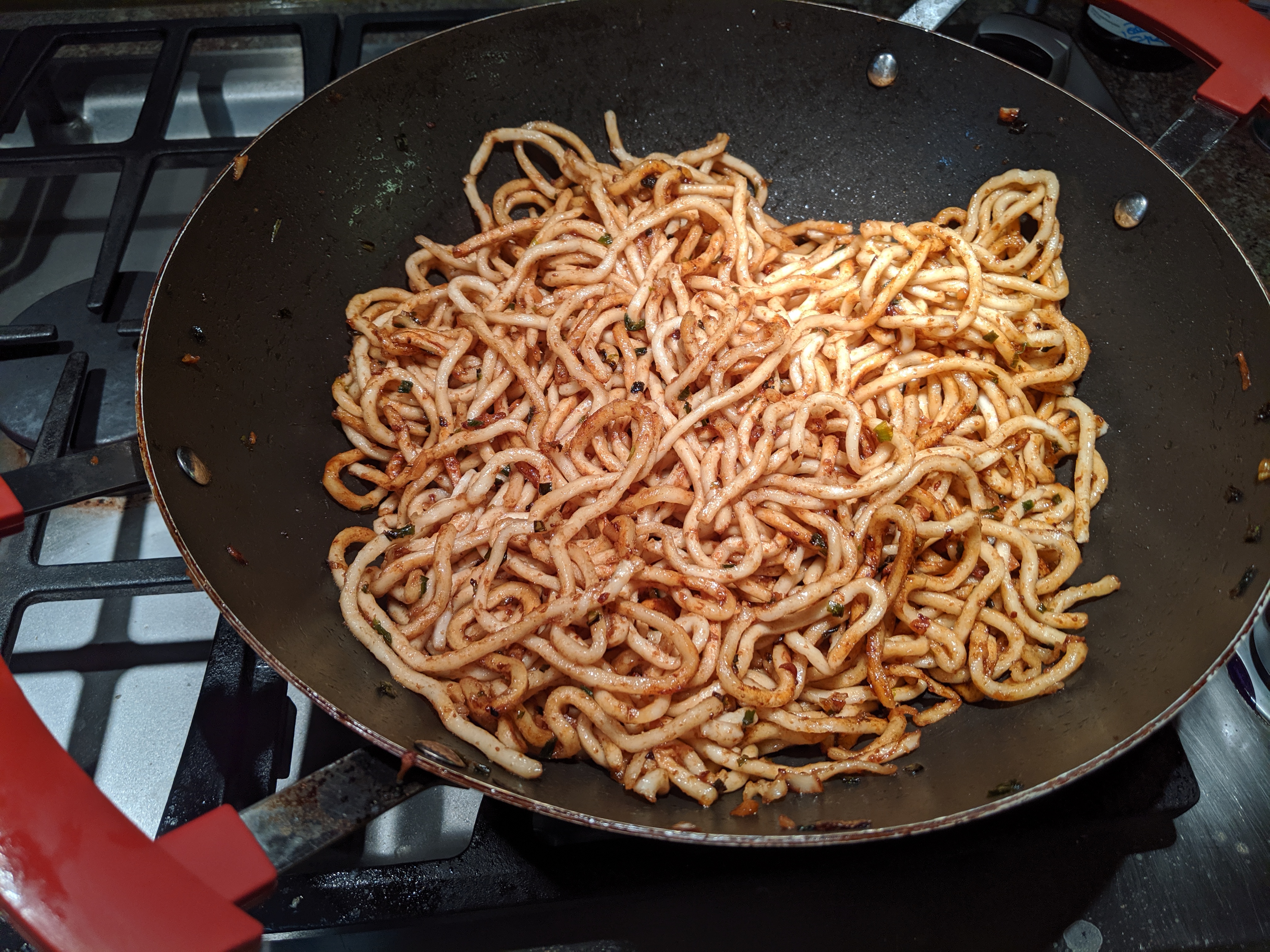 - Fry the noodles to your liking in the wok/skillet. Add more butter (or sesame oil) as needed. Cook as much as you like, I am usually running out of time, but my goal is to at least brown them. Ideally get some to be close to crust a bit. I usually go 50/50 butter oil at that point. 100% works but I get butter conscious by that step, and it's easier to brown/fry at higher temp therefore with oil as butter ain't good for that.
