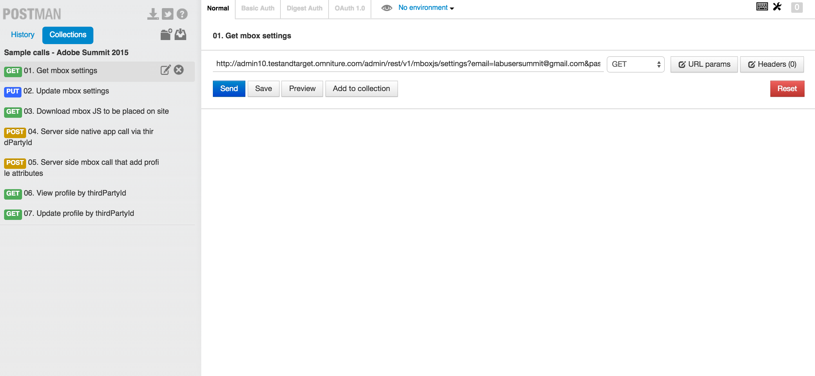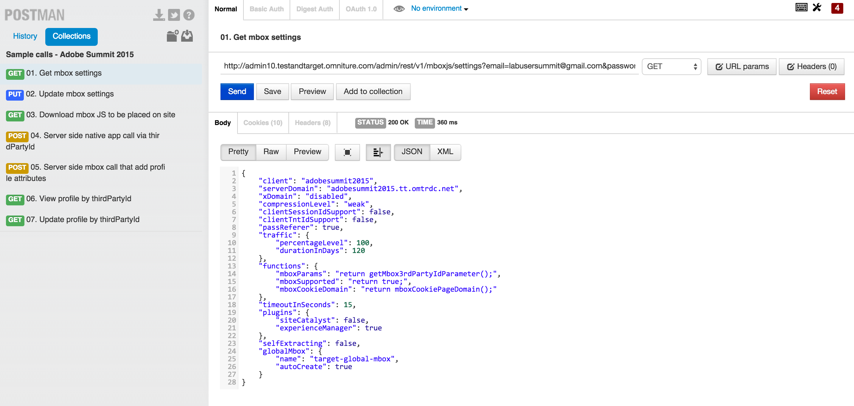 PostMan is a useful Chrome browser plugin that can be used to exercise REST api calls. We will be using this tool throughout this lab to test out various Target APIs.