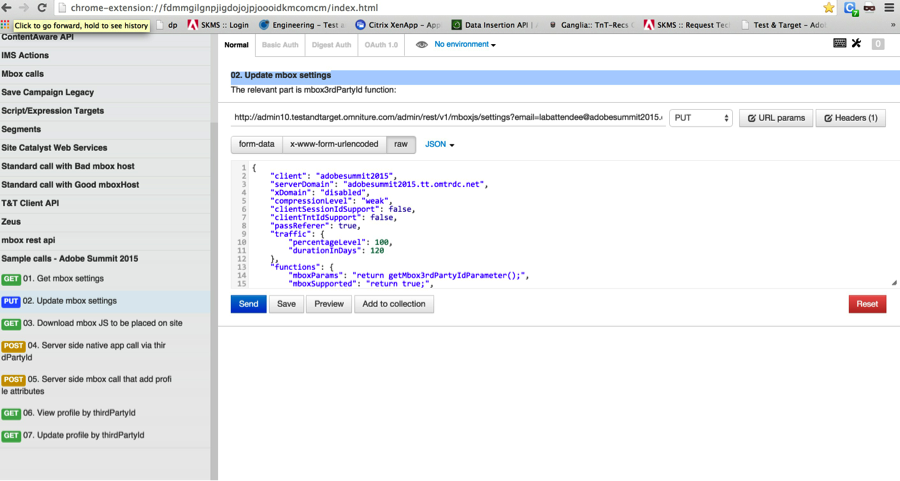 Step 3: Update mbox.js to invoke this function to pass into mbox call. We will use PostMan to do this. Open Postman and invoke the api “02. Update mbox settings”