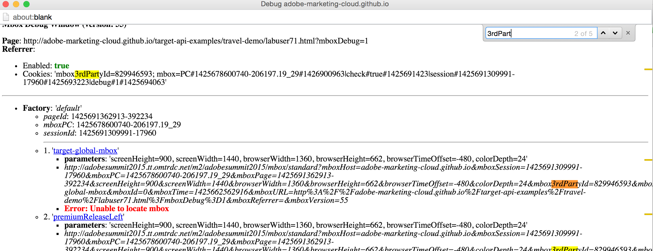 http://adobe-marketing-cloud.github.io/target-api-examples/travel-demo/labuser<USERNUMBER>.html?mboxDebug=1