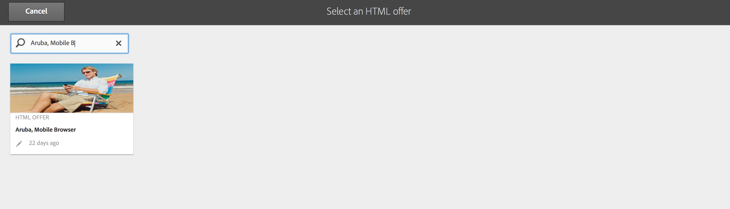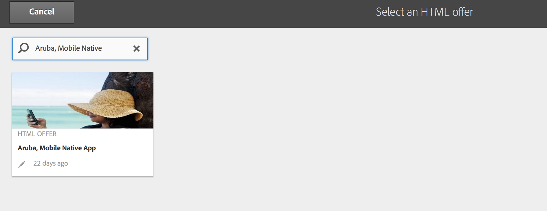 Select premiumReleaseLeft mbox and swap offer to "Aruba, Mobile Native App" offer from Release offers content folder, as shown in these images.