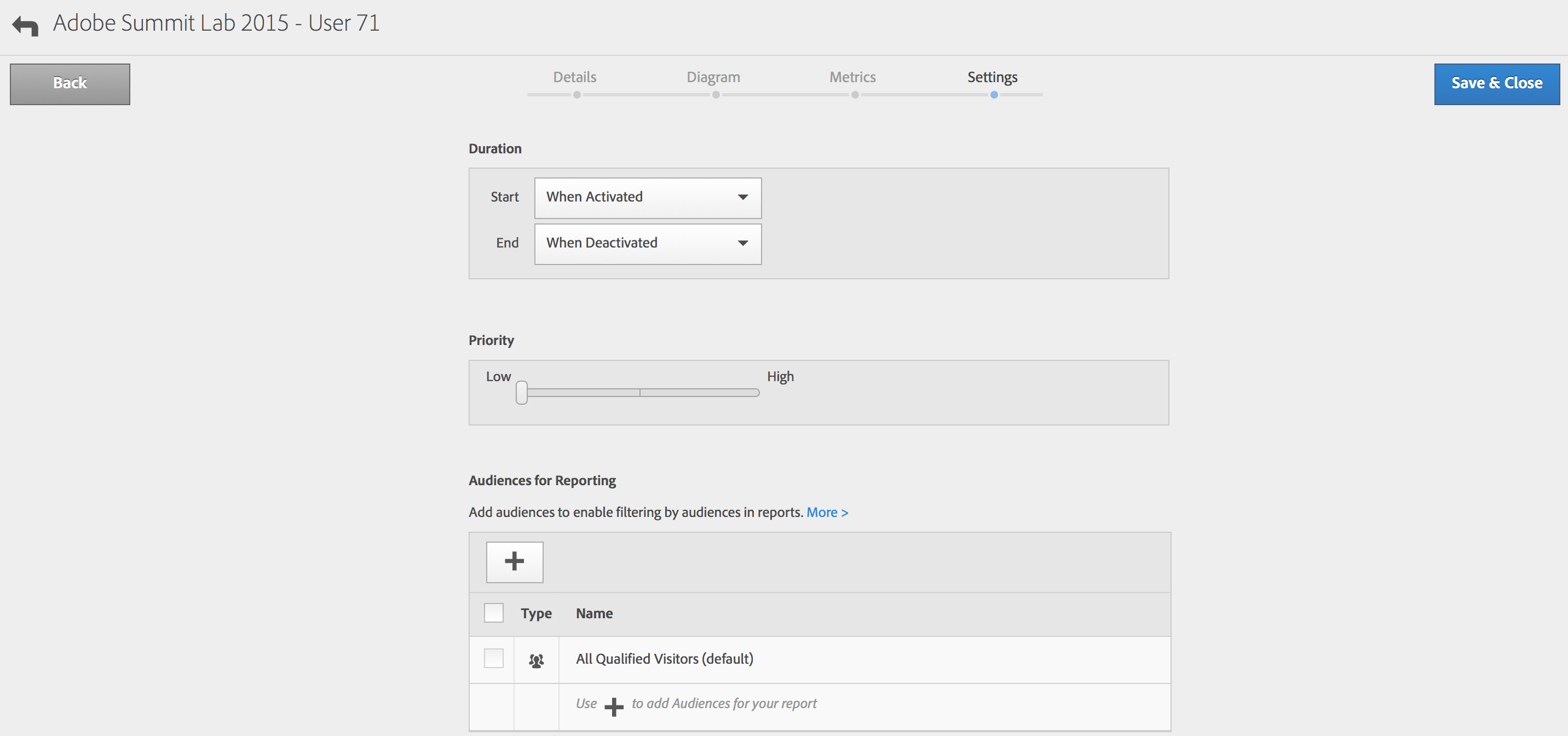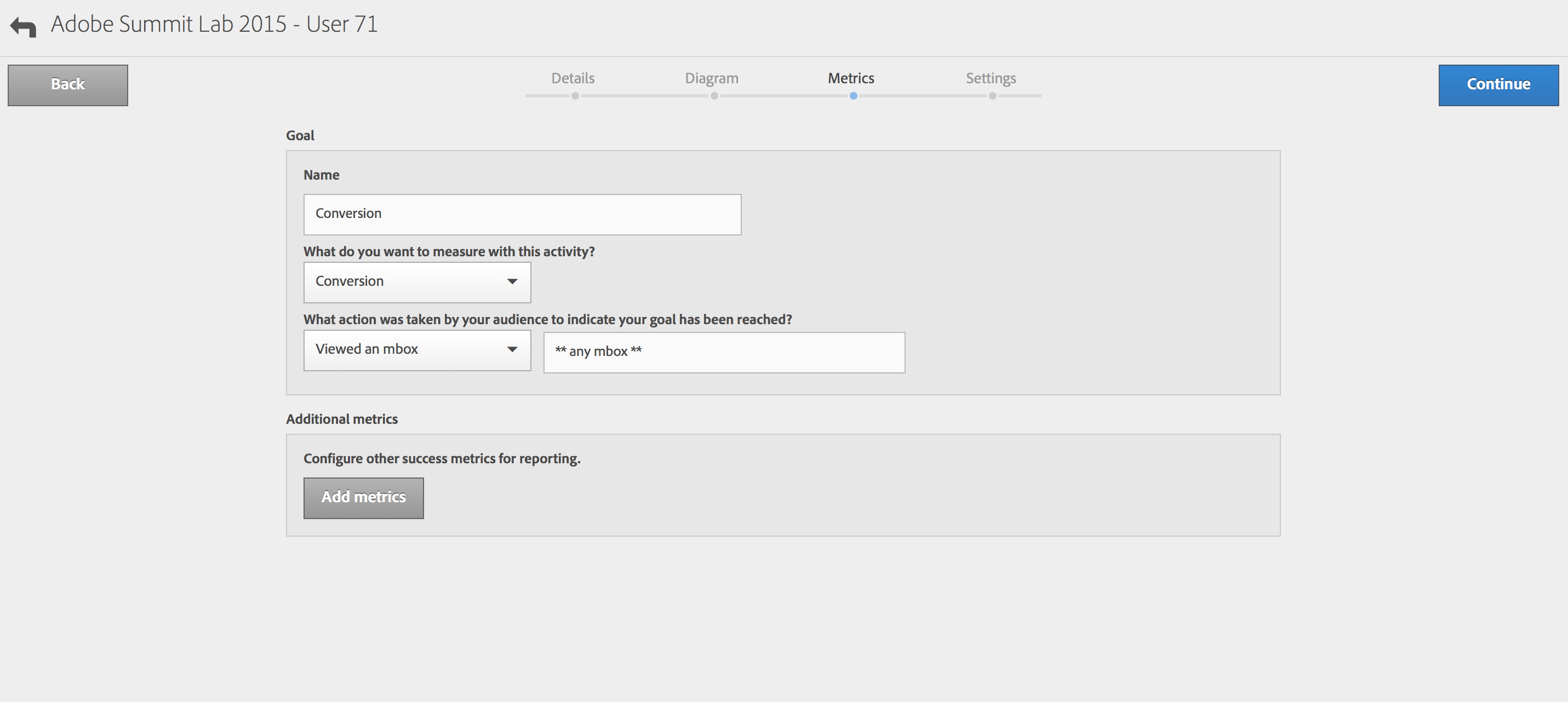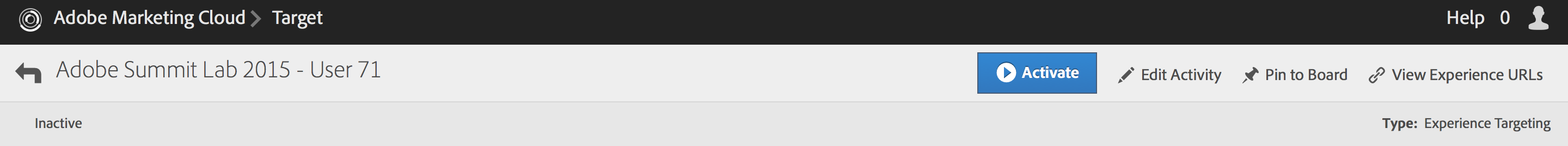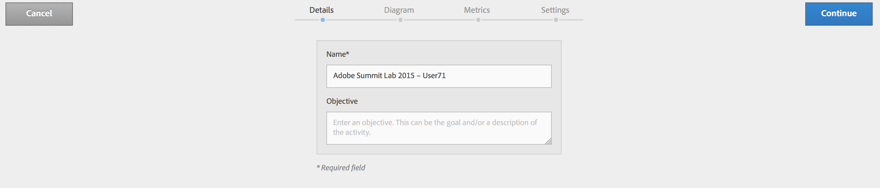 - Step 3: Enter Activity Name – ensure that you create it using the name : Adobe Summit Lab 2015 – User for example : Adobe Summit Lab 2015 – User71