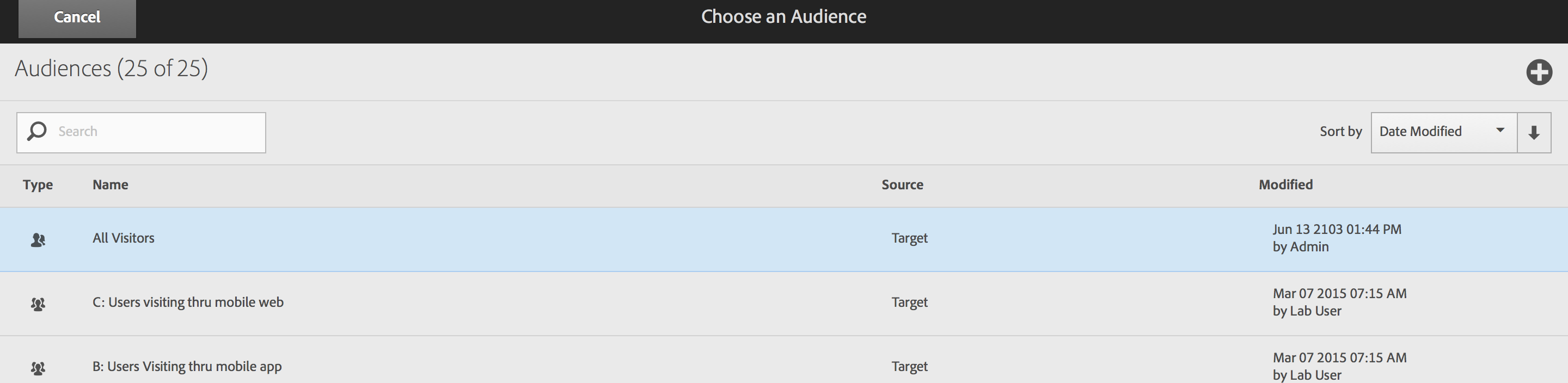 - Step 4d: Click "Add Experience Targeting" button, and then "Add Audiences". Choose the next audience - Audience "All Visitors".