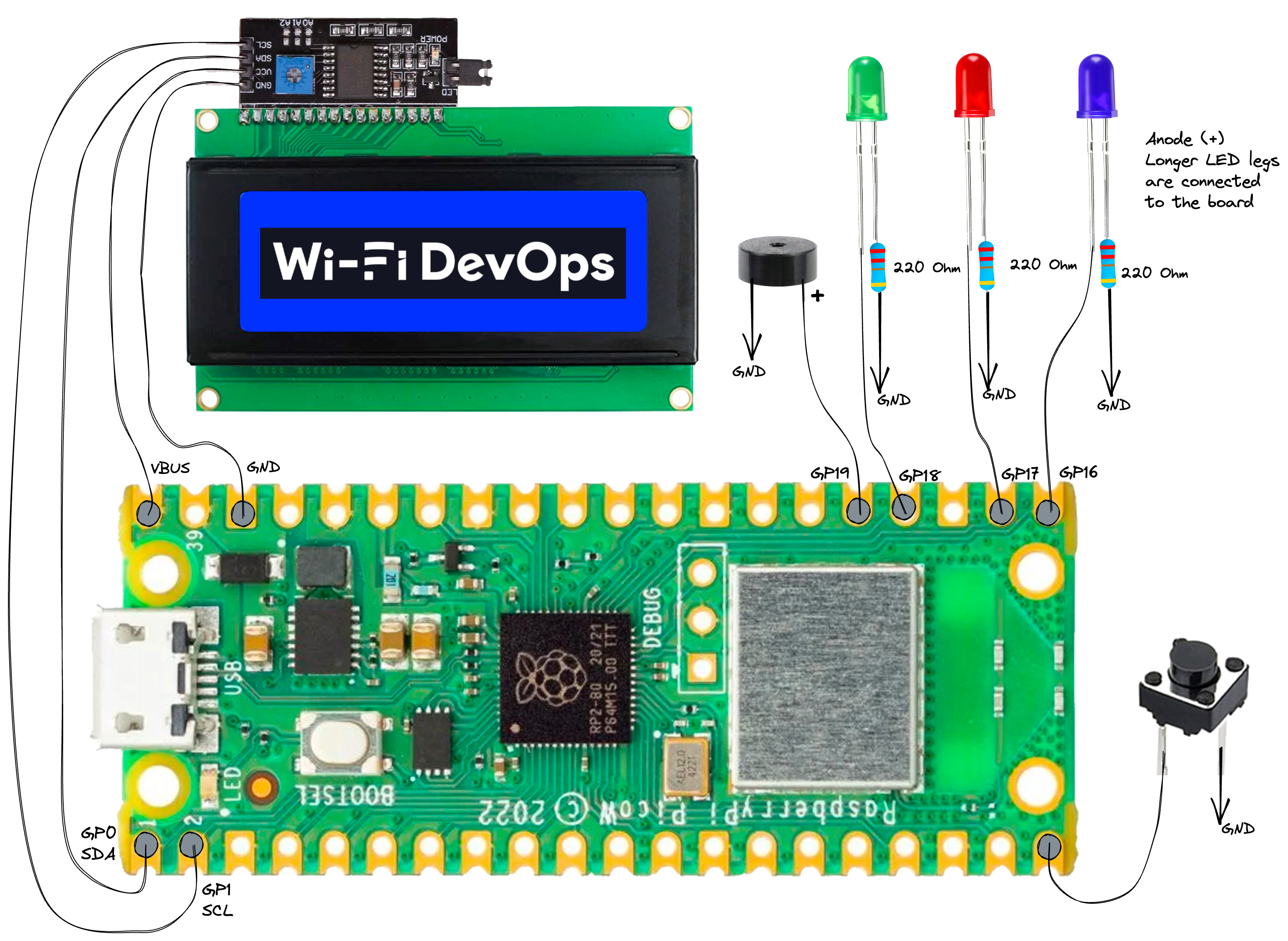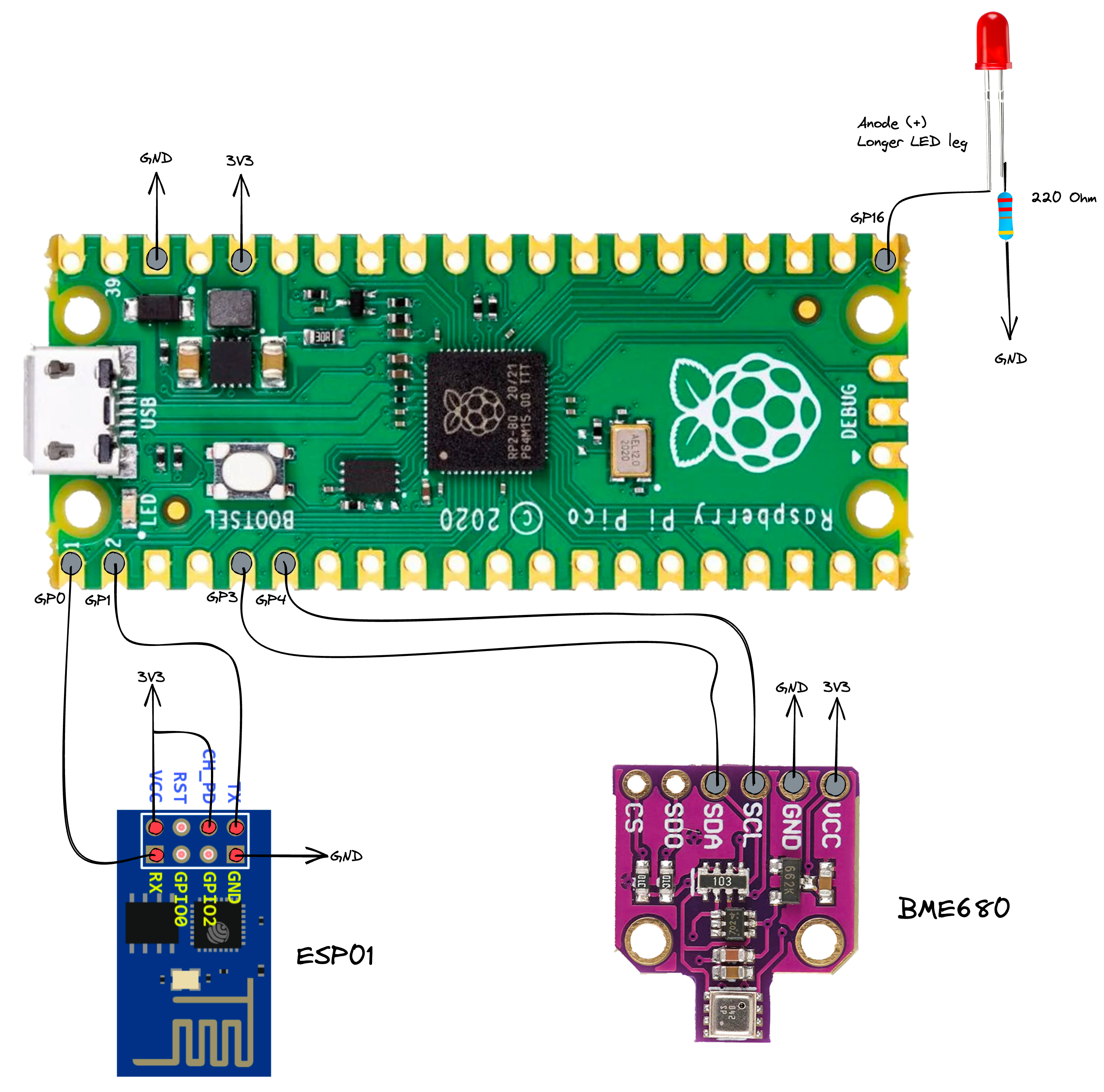 Raspberrypi-pico This repo contains useful codes for Raspberry Pi Pico & Pico W and Useful Diagrams: LED Steup PIR Sensor Steup 1602 LCD Display lcd_api.py and gpio_lcd.py are mandatory co-existing files. 1602 I2C LCD Display lcd_api.py and pico_i2c_lcd.py are mandatory co-existing files. 20x4 LCD Display Passive Buzzer + Push Button + LED Voice Sampling Clap/Snap RaspberryPi Pico + ESP01 + BME680 Mist SSID On/Off