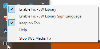 TrayIcon utility to modify JW Library media window.