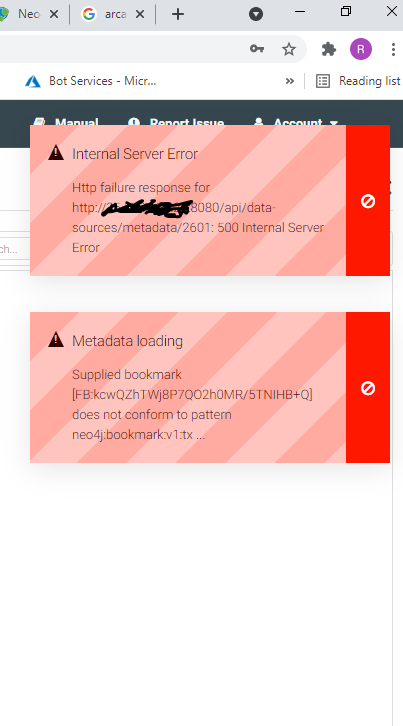 500 Internal Server Error and Supplied bookmark does not conform to pattern.
