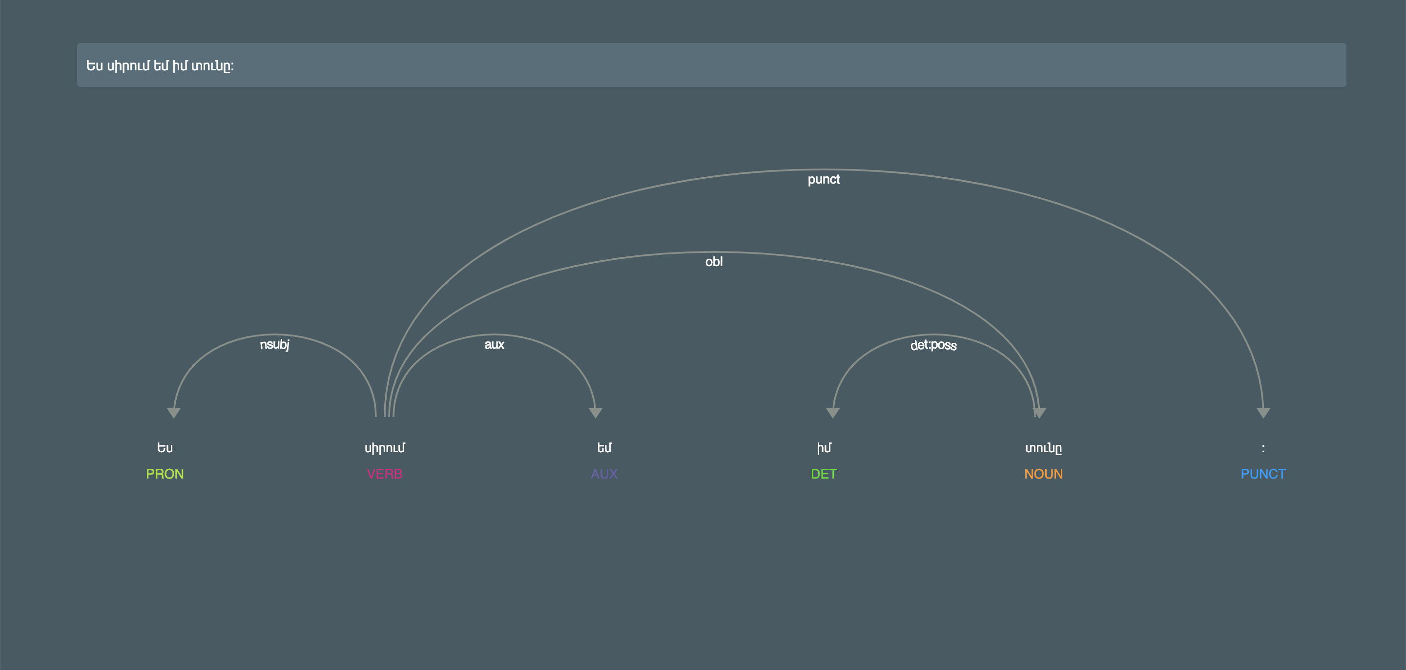 - The parser segments the text into sentences and tokenizes them using ArmTreeBank's Tokenizer module.