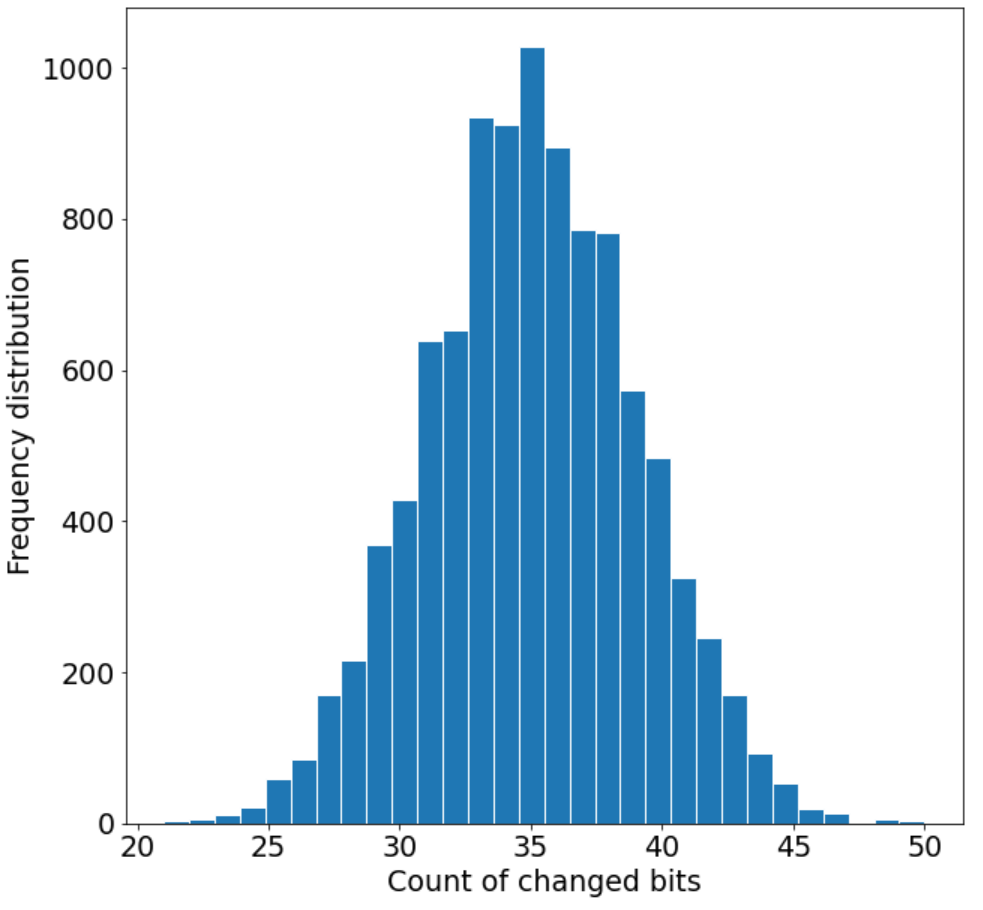 为了度量哈希的扩散效果,我们对 SHA-RNN 算法进行了扩散测试