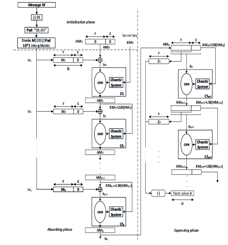引用文献 [2] 提出了两种基于密钥的哈希函数,其采用了海绵函数架构,使用了 混沌神经网络(Chaotic Neural Network) 作为海绵函数的状态转移函数