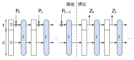 海绵函数(Sponge Function) [2] 是一种算法,它可以接受任意长度的输入比特流,得到任意长度的输出。它的参数为单次输出比特长度