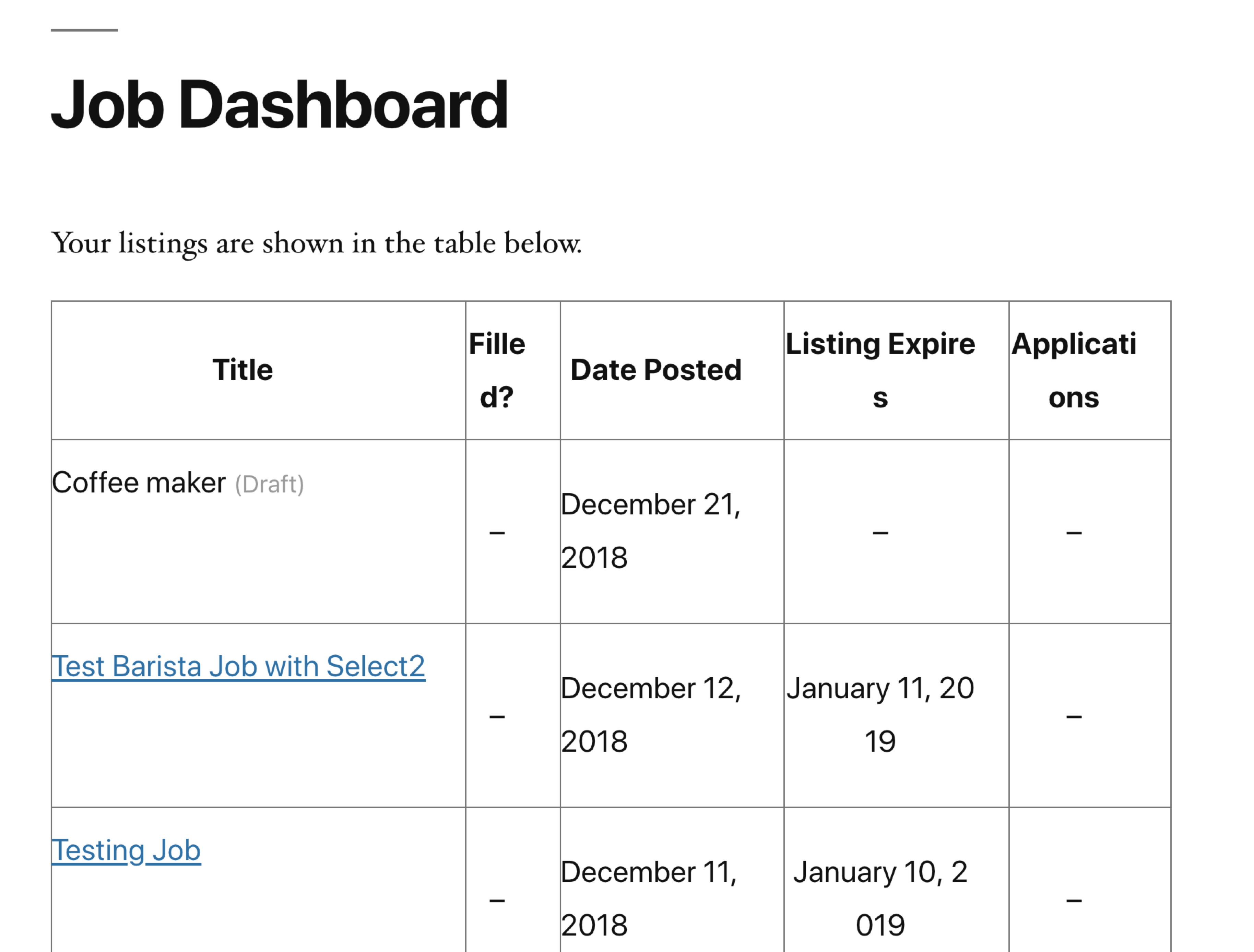 WordPress / WP Job Manager Version