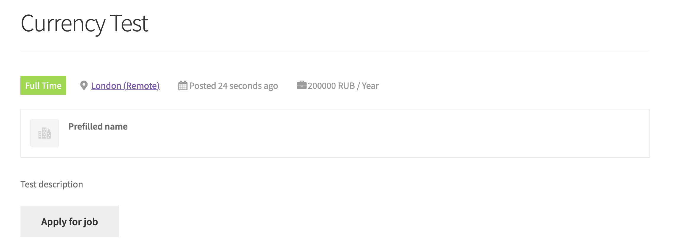 When you set a default currency value in the backend, the frontend UI when submitting a job is not updated. For example, if the currency is set to "RUB" the placeholder still displays "e.g. USD" and the note on the field is unclear.