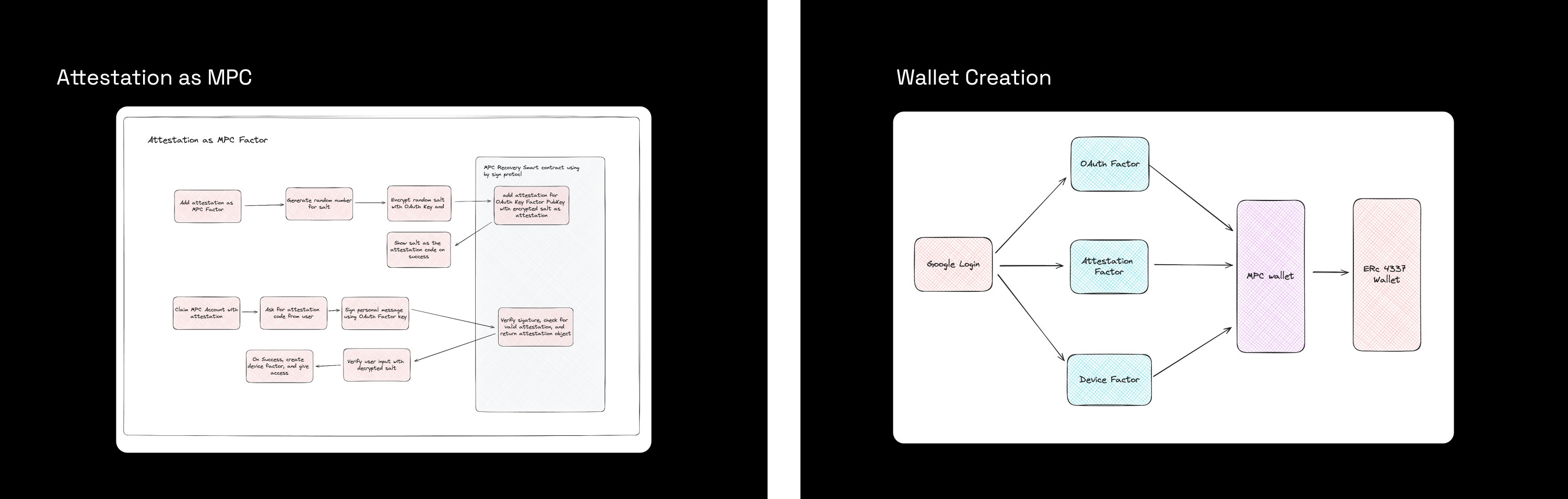 Users can add additional factors to the MPC account, like on-chain attestation. For on-chain attestation, we have used the Sign Protocol. Adding an on-chain attestation allows the user to claim the account on any other device by the OAuth login. This significantly improves the UX and reduces the entry barrier for non-tech people.
