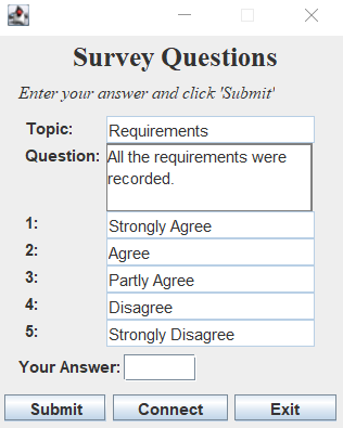 Survey manager main form application with client forms, press 'Connect' on each form to connect to a chat server.