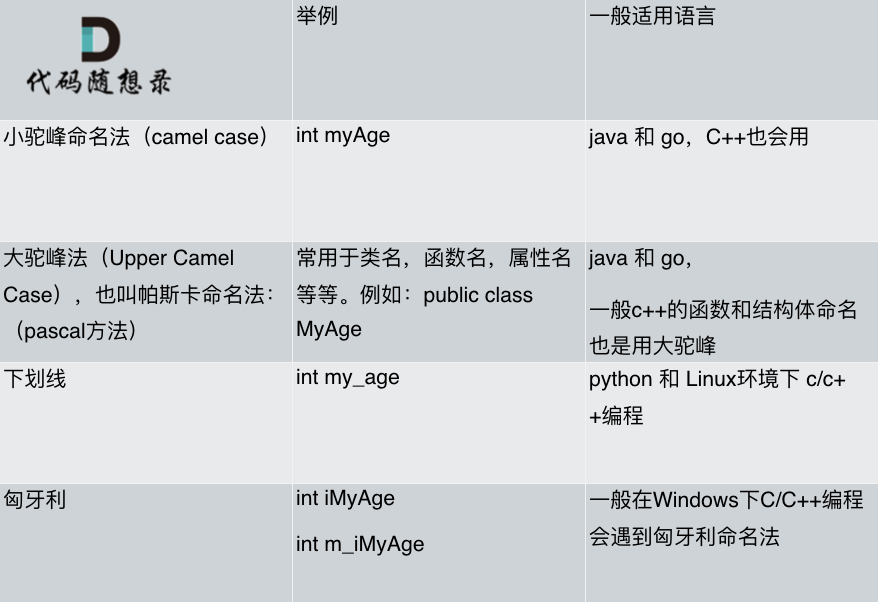 通常来讲 java和go都使用驼峰,C++的函数和结构体命名也是用大驼峰,大家可以看到题解中我的C++代码风格就是小驼峰,因为leetcode上给出的默认函数的命名就是小驼峰,所以我入乡随俗。
