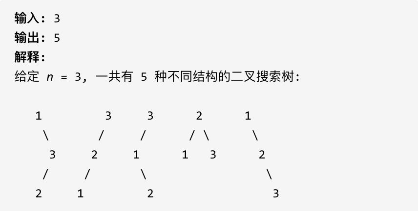(可能有同学问了,这布局不一样啊,节点数值都不一样。别忘了我们就是求不同树的数量,并不用把搜索树都列出来,所以不用关心其具体数值的差异)
