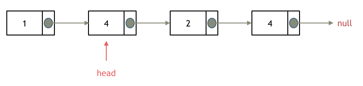 这里以链表 1 4 2 4 来举例,移除元素4。