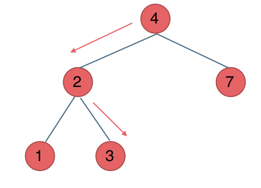 中间节点如果大于3就向左走,如果小于3就向右走,如图: