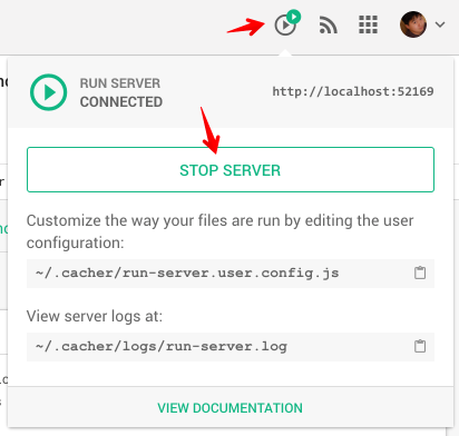 problem via the log file: ~/.cacher/logs/run-server.log.