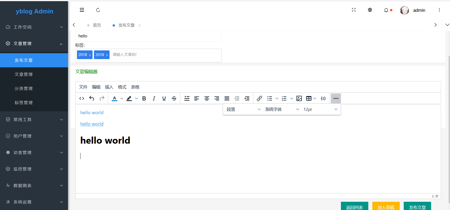 yblog是基于SpringBoot架构开发的博客:博文管理、统计图表、接口监控、访问记录、附件管理、用户管理、友链管理、监控管理、抓取博文,以及第三方登录等功能,且一直会对本项目进行加强,请各位大佬多多指点,一起共同进步。 文章无需自己写,可以使用作者自己编写的全自动爬虫工具即可,只需轻轻一点,万千文章到手。