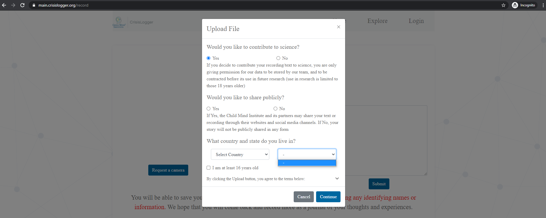 - Open the site https://main.crisislogger.org/