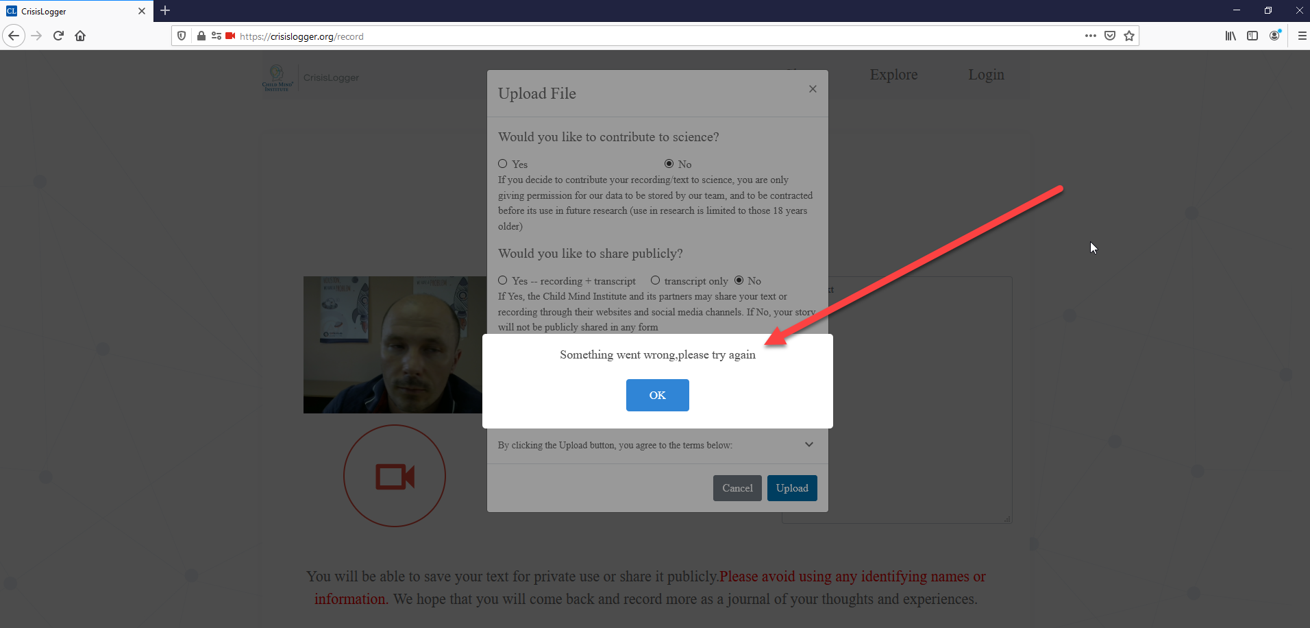 - Try to upload the recording