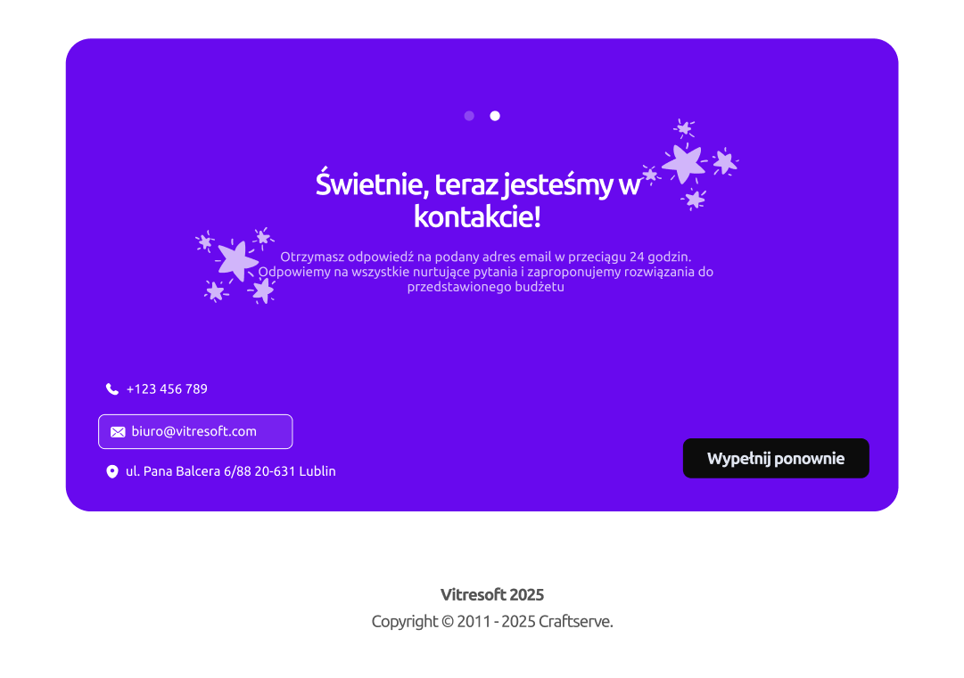 | <h2 class="infoTitle">Świetnie, teraz jesteśmy w <br /> kontakcie!</h2> |