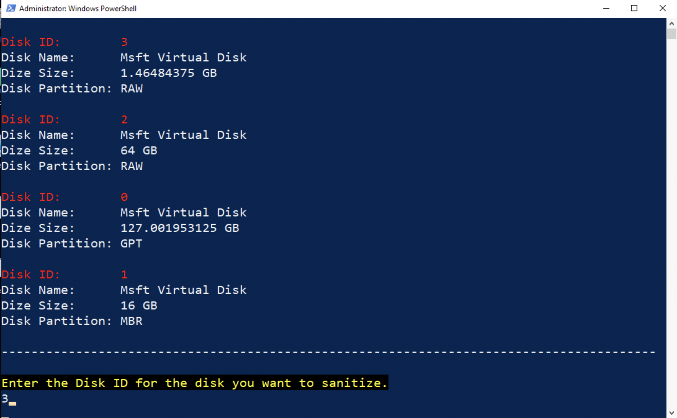 Select the disk: