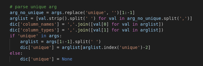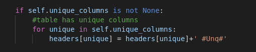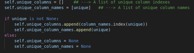 Στη συνέχεια αρχικοποιήσαμε δύο μεταβλητές unique_column και unique_column_names στον constructor της