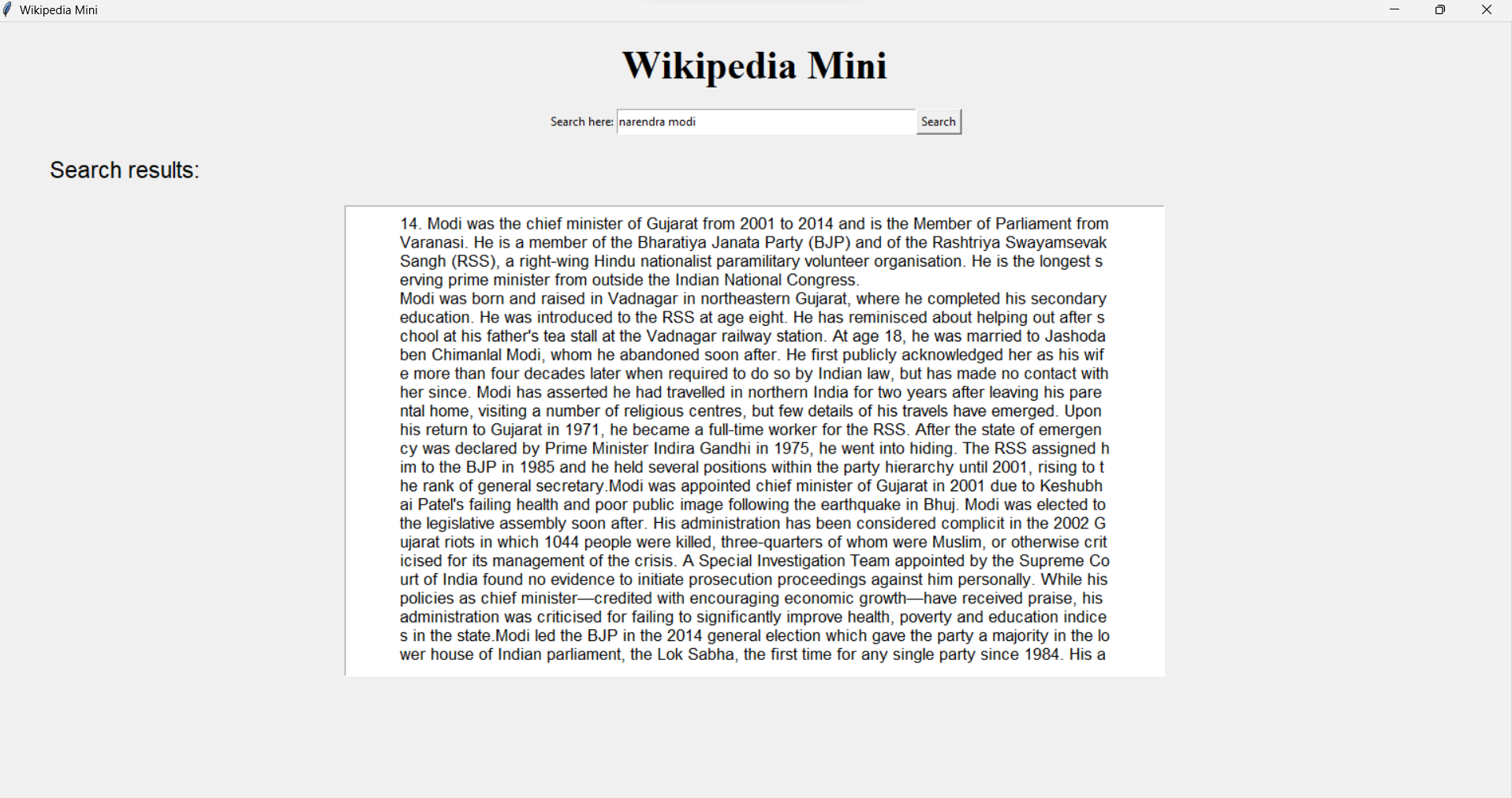 Wikipedia is a multilingual online encyclopedia created and maintained as an open collaboration project by a community of volunteer editors using a wiki-based editing system. In this project, we will see how to use Python’s Wikipedia module to fetch a variety of information from the Wikipedia website.