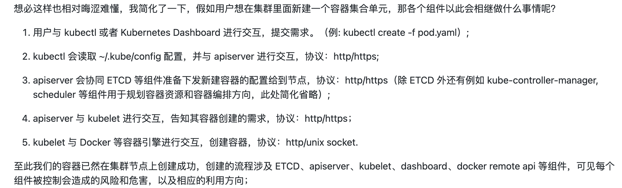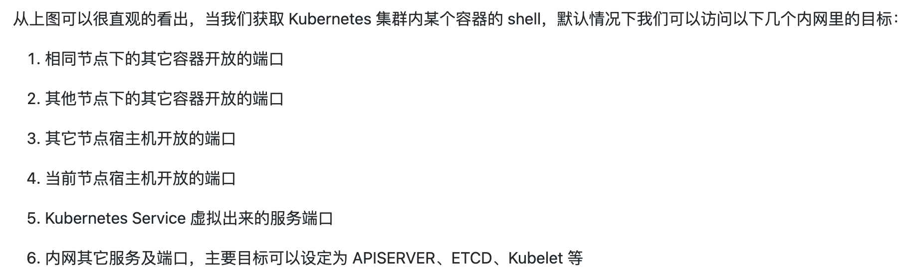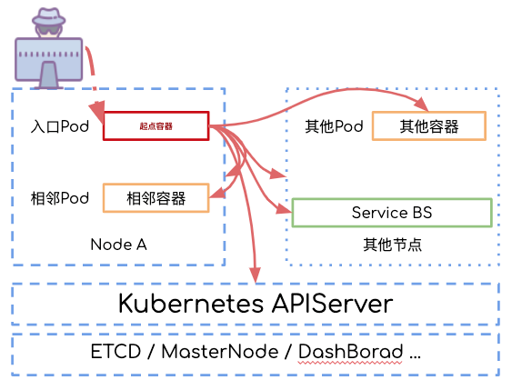 但是当我们还没获取Master节点权限,只是在容器内网中通过漏洞利用或者信息收集获取到身份凭证和API server的地址呢?