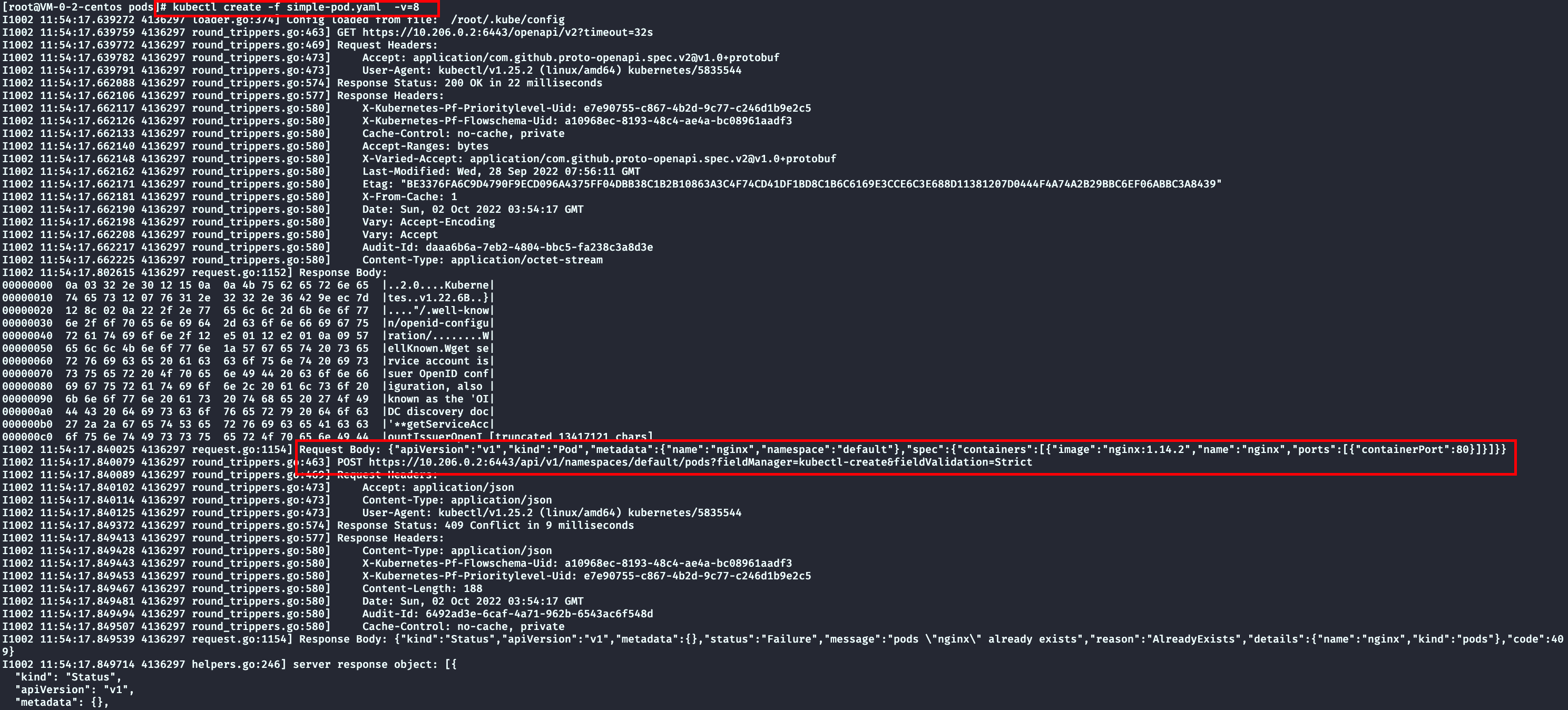 #设置-v=8,发现kubectl 在发起 API 请求创建对象时,将yaml配置信息转换成JSON格式,作为请求体发送。