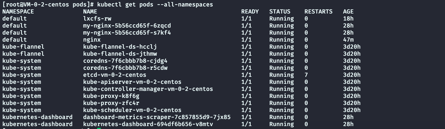 #在Master节点上执行如下语句,无需额外参数,kubectl会自动寻找kubeconfig文件