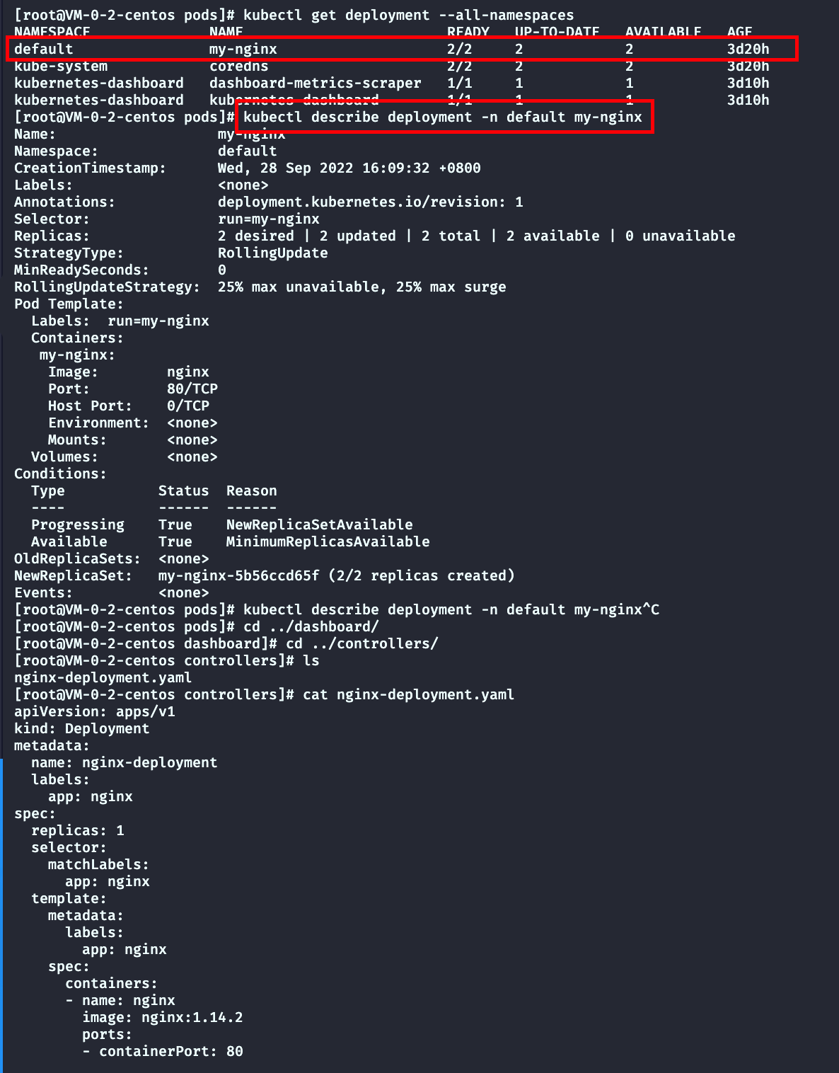 #通过-n指定default名称空间,寻找该名称空间下名为my-nginx的deployment的description