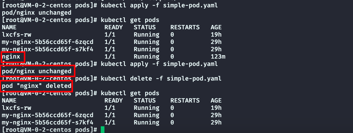 由于没修改simple.pod.yaml,apply后显示unchanged