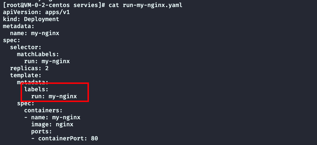 labels标签"run:my-nginx"与之前创建的deployment的 labels 标签对应