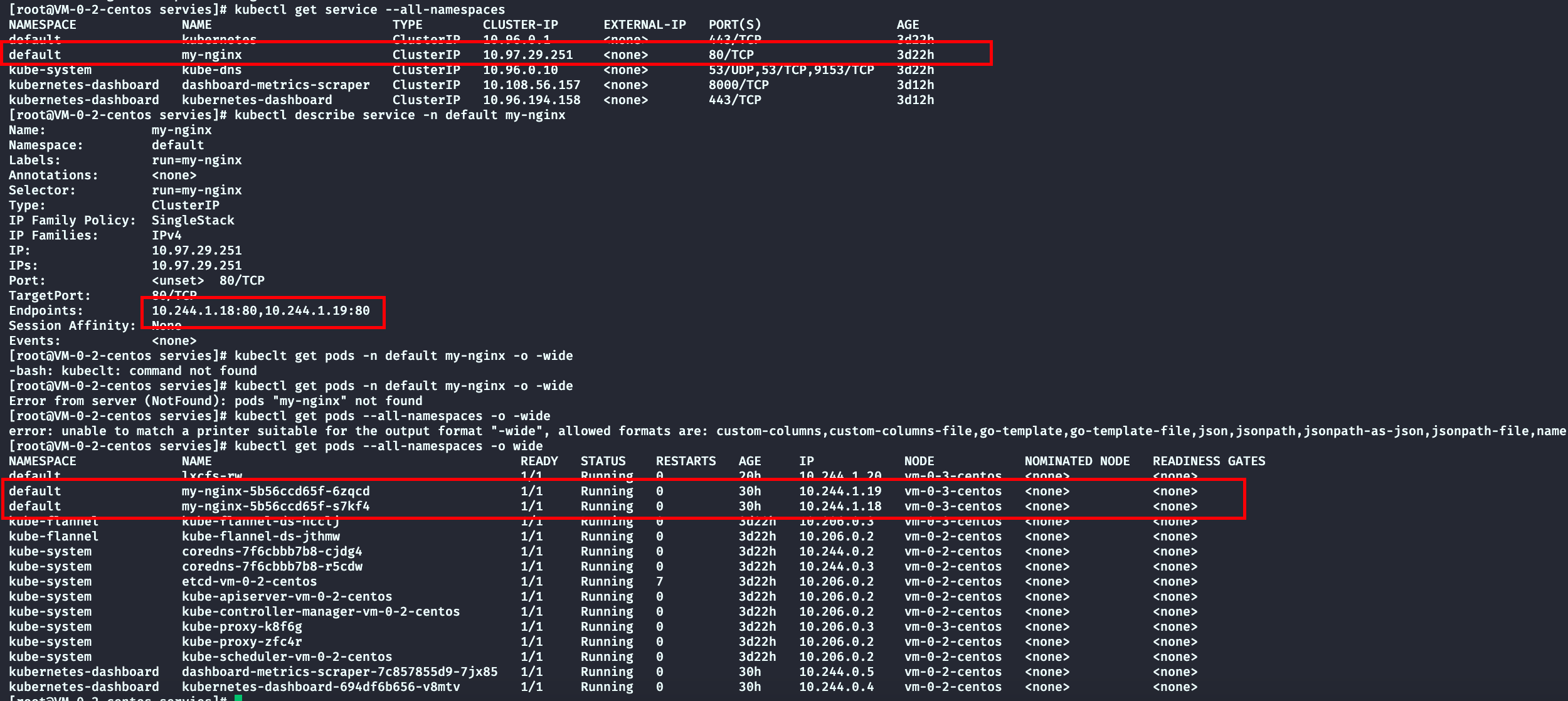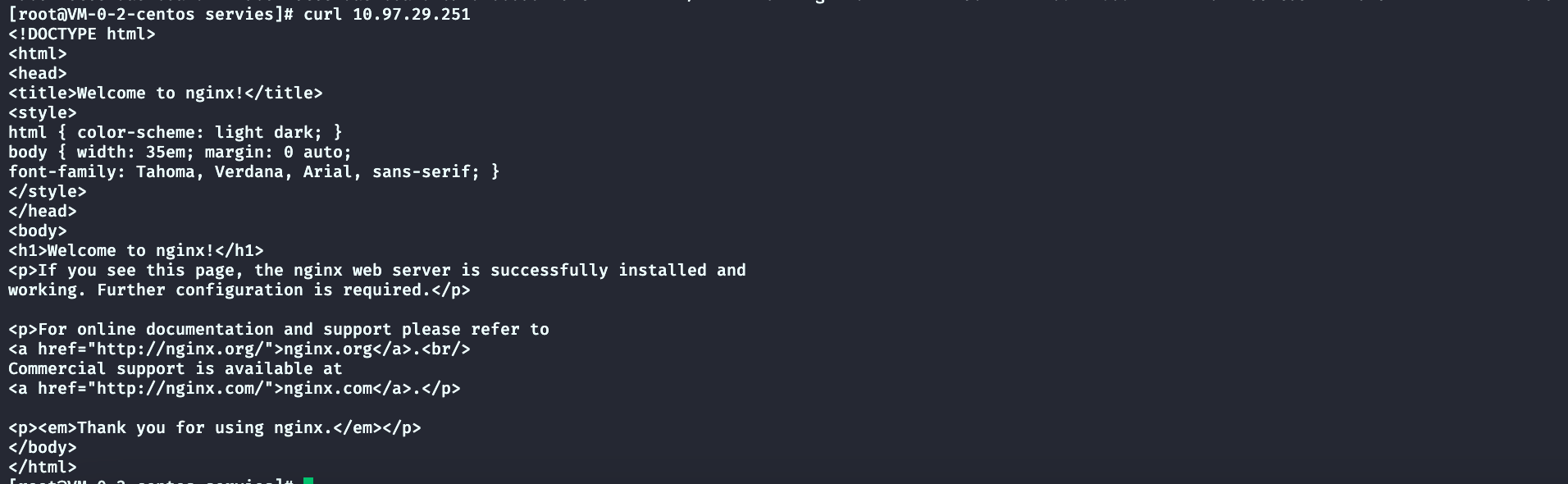 可见新建的my-nginx service服务对应IP 10.97.29.251,对应的后端Pod为10.244.1.18-19,访问10.97.29.251会负载到后端任意Pod上
