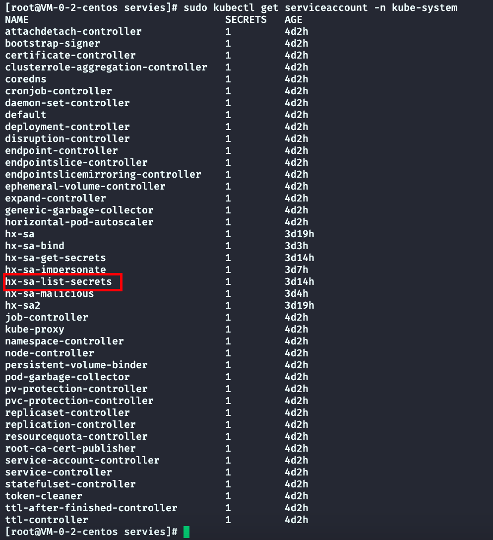 kubectl get secret -n kube-system |grep hx-sa-list-secrets
