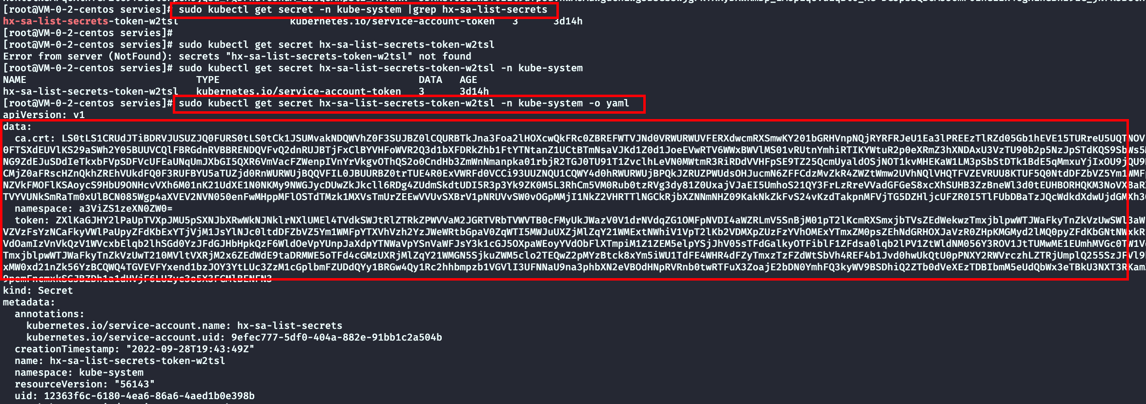 kubectl get secret hx-sa-list-secrets-token-w2tsl -n kube-system -o yaml