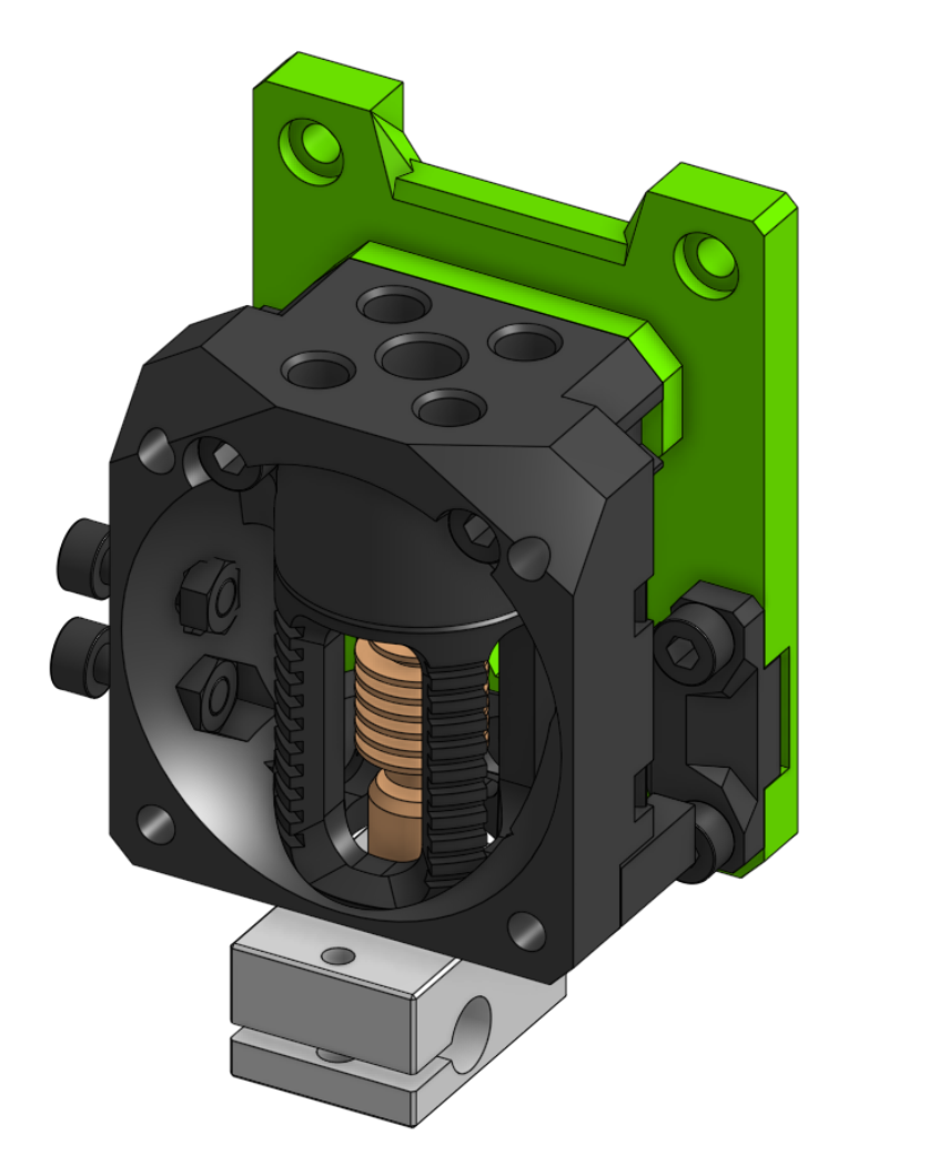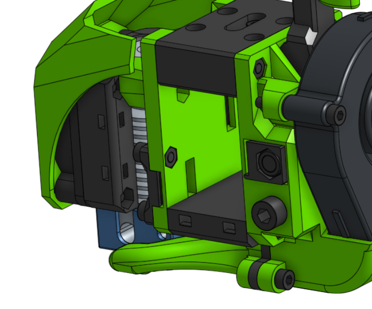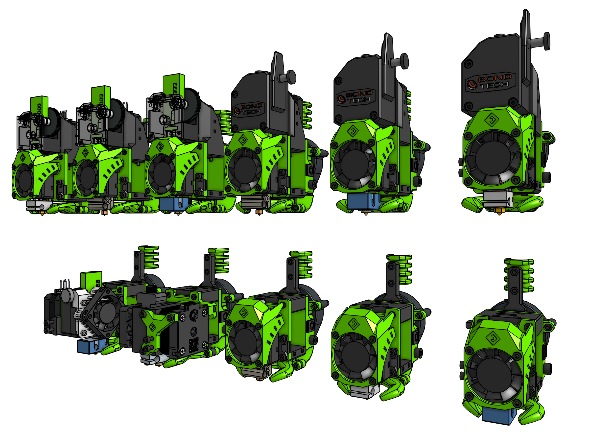 frontpart is not shared between the 3 hotends (V6, Mosquito, Dragon) - no more fiddling with the belts to swap a hotend!