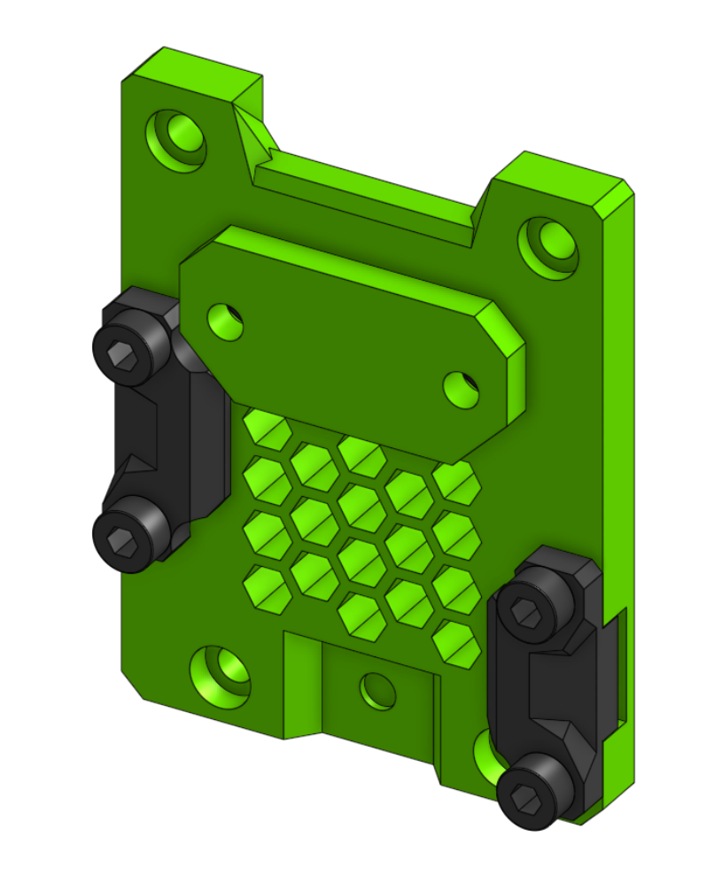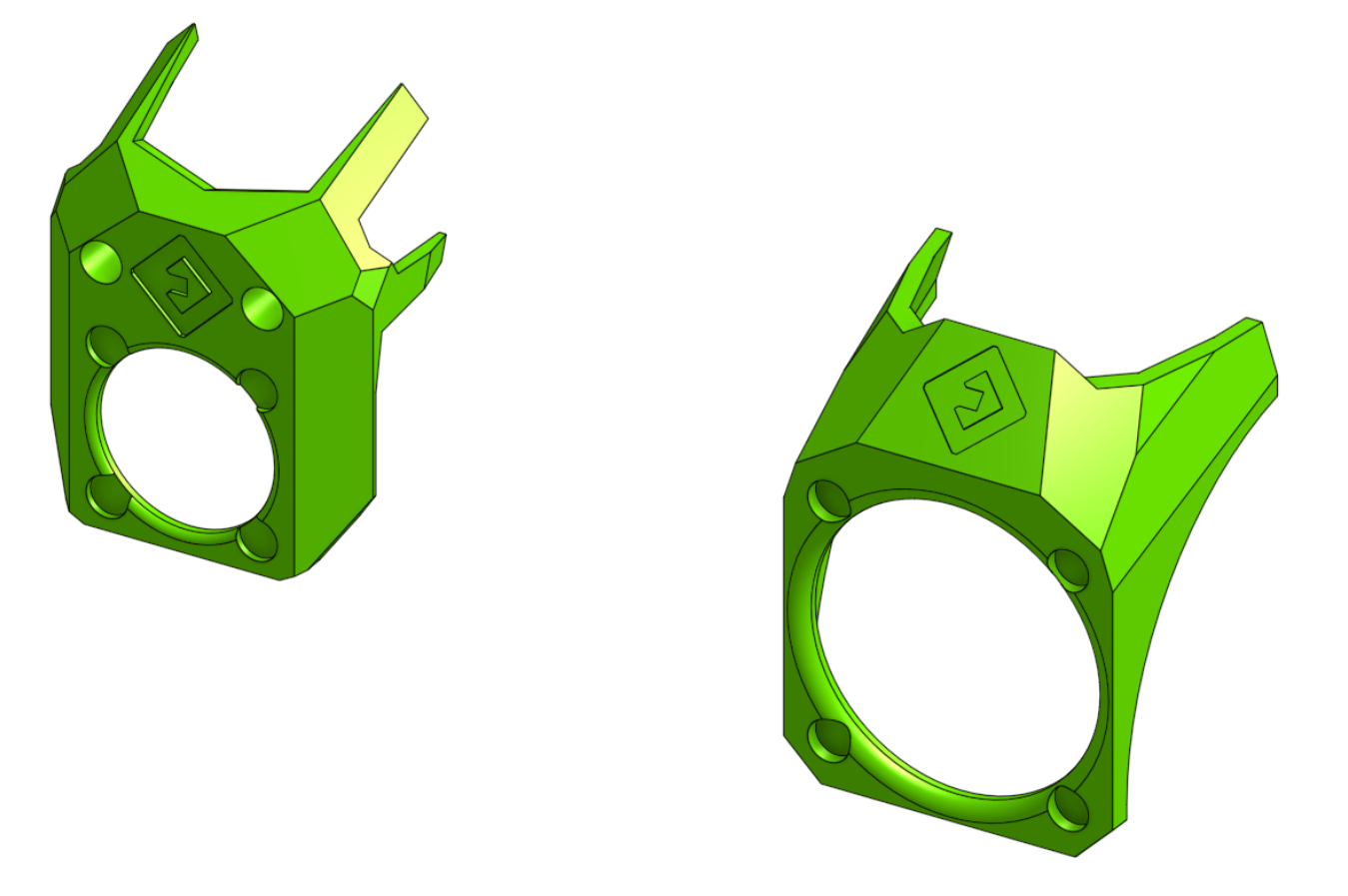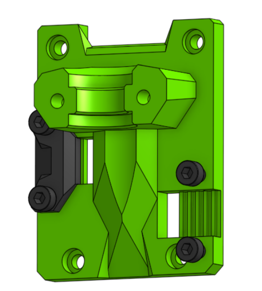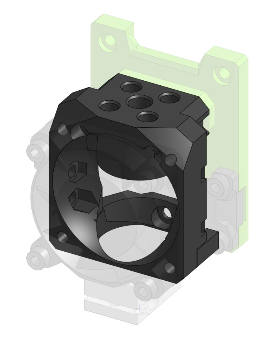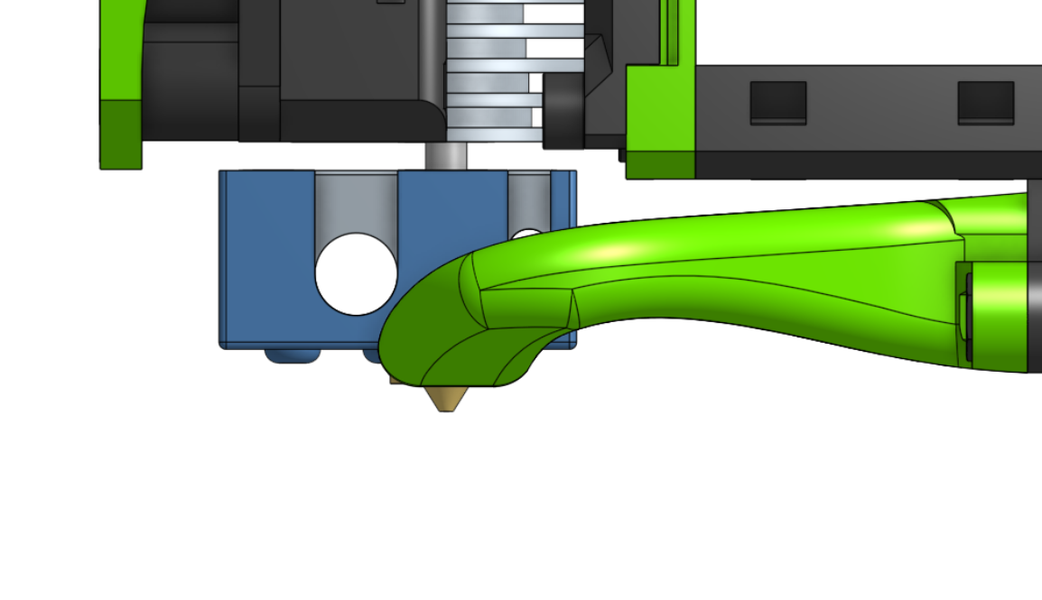 3-point hotend support - the face parts are now supported with a part that reduces the wobble on the nozzle tip. It also directs the air from the hotend fan away from the bed.