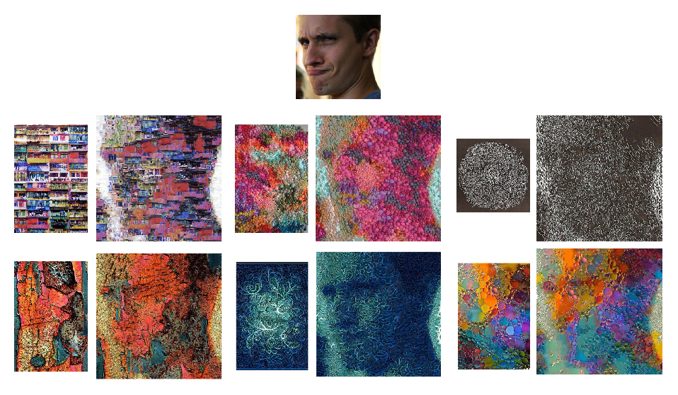 We can also provide multiple example images and the algorithm will "remix" them into a new image.