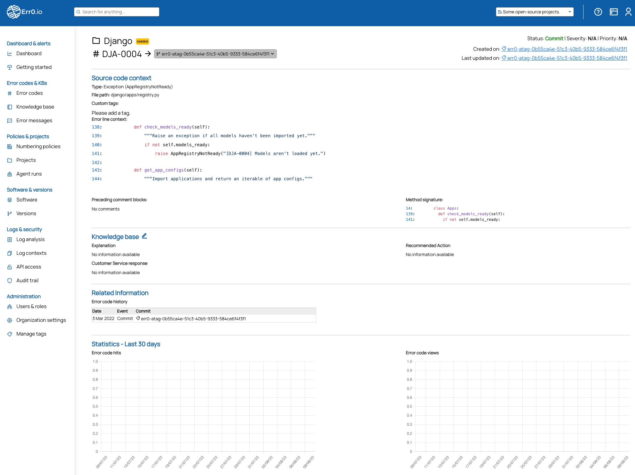 When you're ready to use this in production why not create an err0 account, you can make a detailed configuration for the agent on our platform and of course manage knowledge around your error codes. It's free, no credit card required.