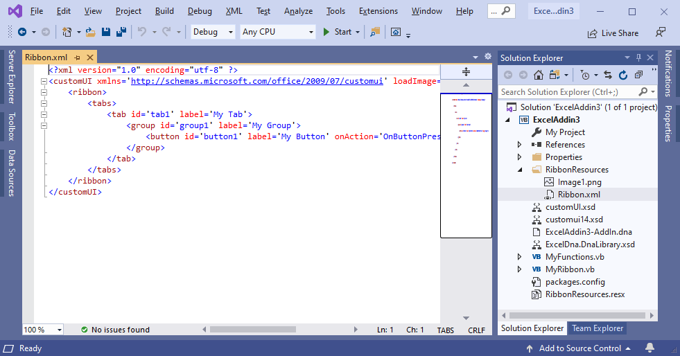 Changed ribbon tab label from 'My Tab' to the project name:
