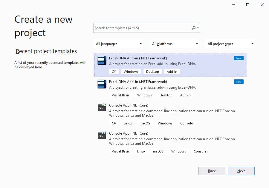 Added the Excel-DNA icon to project templates, capitalized 'Add-in' in project template names, added detailed project template descriptions, added Windows, Desktop, Add-in tags to project templates, added the target framework in the template names: