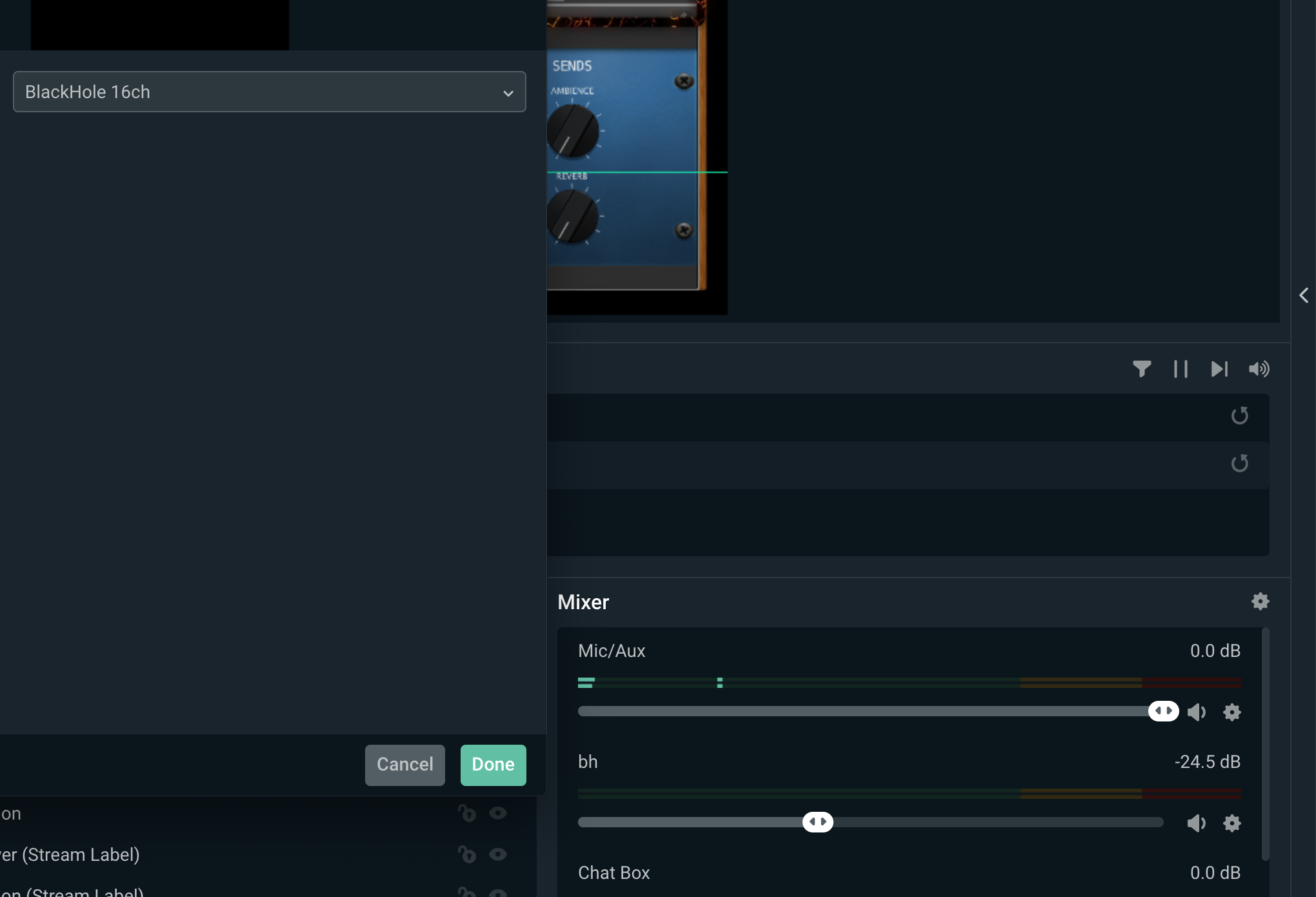 I don't see this working, it doesn't give me black hole as an input device for audio with Streamlabs. Is it possible? I tried also a multi-output device and it still didn't show me a multi-output device in streamlabs OBS audio input settings.