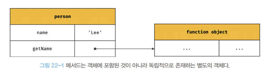 console.log(person.getName()); // Lee- getName 프로퍼티가 가리키는 함수인 getName 메서드는 다른 객체의 프로퍼티에 할당하는 것으로 다른 객체의 메서드가 될 수 있음. 또한, 일반 함수에 할당하여 일반 함수로 호출될 수도 있음.
