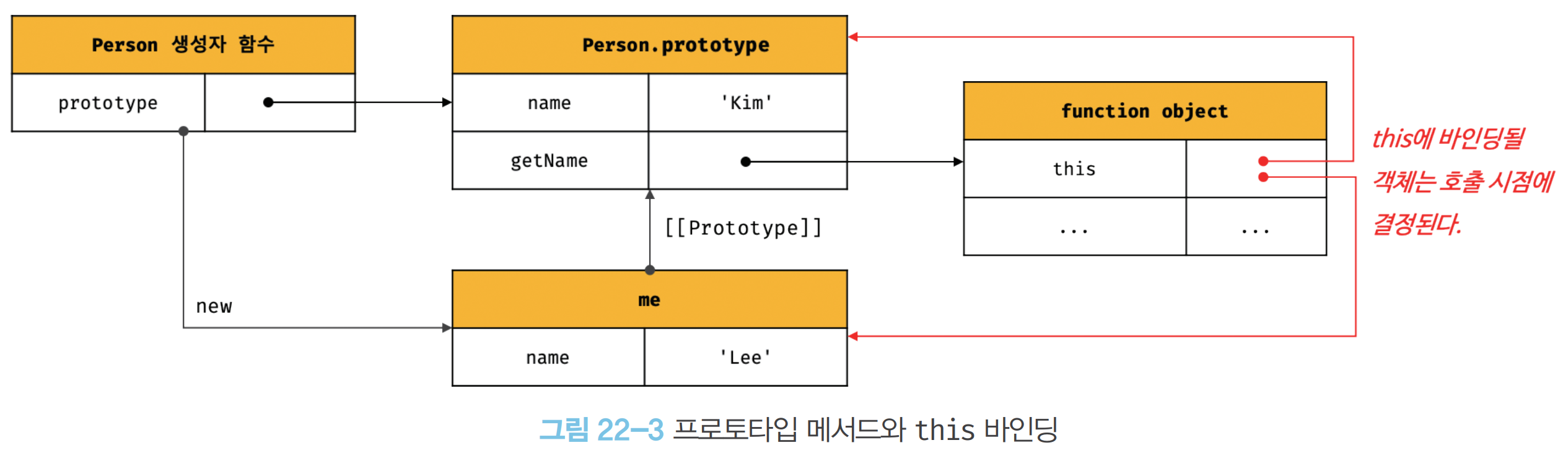 console.log(Person.prototype.getName()); // ② Kim- 생성자 함수 내부의 this에는 생성자 함수가 생성할 인스턴스가 바인딩된다.